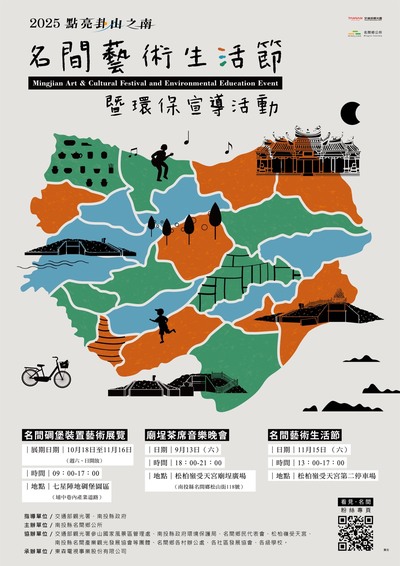 (三)11月15日(六)下午1時至5時為「名間藝術生活節」將於名間鄉松柏嶺遊客中心斜對面廣場舉行,親子劇團、藝文展演、市集及環保宣導等多元活動。